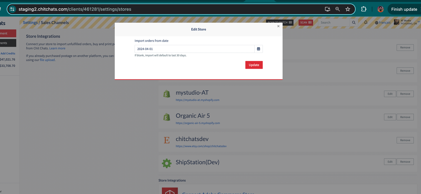 Integrating your store will not display live Chit Chats shipping rates to your customers but many Chit Chats clients find it helpful to create standard shipping rates for their items based on our pricing. Importing orders uses the order item's selling price as the customs amount. If you experience difficulty with connecting your account, please contact us with your client ID.