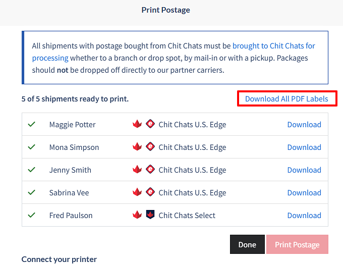 You can even download the labels individually without the need to have them sent to you in a bulk email. This will open the label file in a new tab in your browser and you can print it directly then.