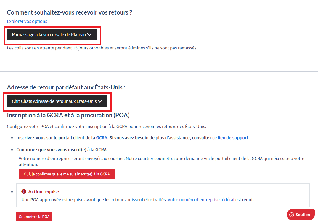 Après avoir confirmé votre inscription à la GCRA, vous devez immédiatement entamer le processus de la POA (procuration). Cela autorise notre courtier en douane à gérer votre compte de retours en votre nom.